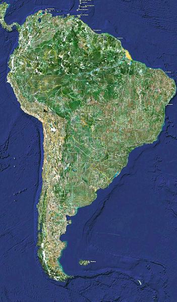 Geographically, South America refers to the territory located roughly between 12.5 degrees north and 56 degrees south latitude, and 34.5 east and 81.5 degrees west longitude, corresponding to the nations located southeast of Panama: Colombia, Venezuela, Guyana, Suriname, Brazil, Ecuador, Peru, Bolivia, Paraguay, Chile, Argentina, and Uruguay. Physically it is bordered by the Caribbean Sea and the Atlantic and Pacific Oceans. Internally it is divided by the Andean highlands in the west, the tropical northern lowlands and the Guiana Shield, the Amazon rainforest in the center, and the relatively drier southern cone. The northern Caribbean States of Venezuela, Guyana, Suriname, and parts of Colombia and Brazil are isolated from the rest of the region by a vast series of wetlands and rainforest while the countries of the more populous western portions of Ecuador, Peru, Bolivia, Chile, and Colombia are isolated on the western Pacific coast by the Andes Mountains, the longest and second highest mountain chain in the world. Finally, the territory located south of the Amazon and east of the Andes encompasses some of the most fertile land on the planet and the majority of Brazil’s population and all of Paraguay’s, Argentina’s, and Uruguay’s.