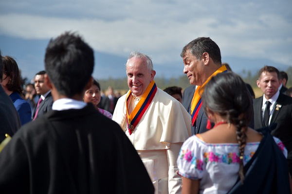 “In the words of the gospel, we can find the keys that will permit us to face current challenges, appreciate differences, and promote dialogue and participation without exclusions,” Francis said in seven minutes of remarks on a windswept tarmac after landing in Ecuador’s capital, Quito.